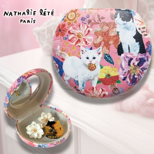 - > 【松尾ミユキ】 Multi case|ミラー付きマルチケース|アクセサリーや小物入れに|選べるデザイン Momo/Nala/Shima/Perle/Bushy|ねこ 猫 ネコ