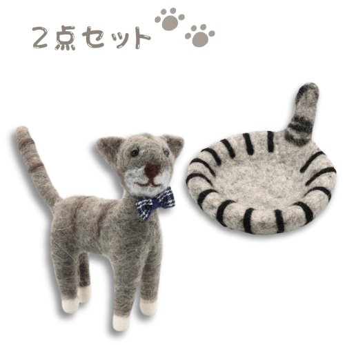 【アジアン雑貨・エスニック輸入雑貨】ネコのしっぽフェルトレイ(グレー) | 猫ネコcat