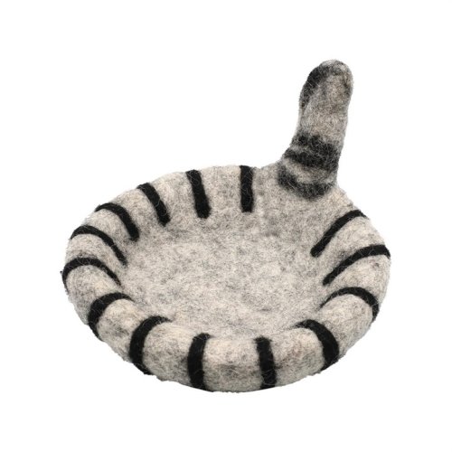猫好きさんにはたまらないネコのしっぽトレイ。 ハンドメイドで作られた温もりあふれる柔らかい風合いです。 ナチュラルな雰囲気で、インテリアに馴染みます。 ちょっとした小物にちょうどいいサイズ。 ヒツジの毛を広げて石鹸水などを含ませて、もんだり巻いたり転がしたりすることで作られます。