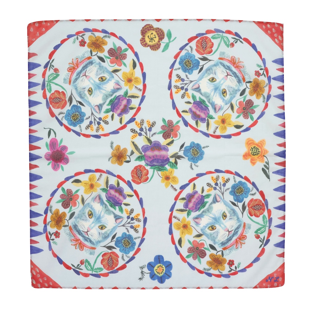 【ナタリー・レテ / Nathalie Lete】Handkerchief ハンカチーフ|Blue cat|猫ねこネコ [FASH183]