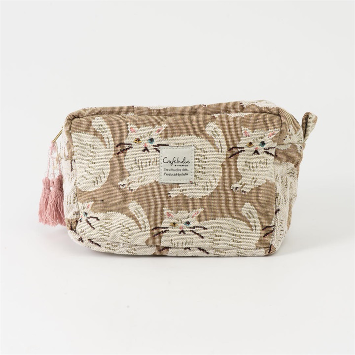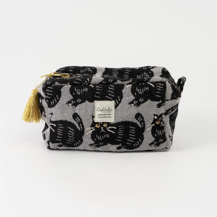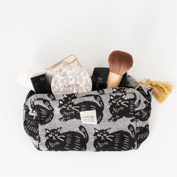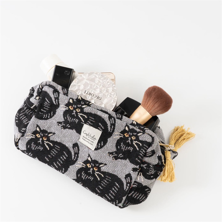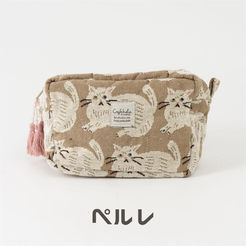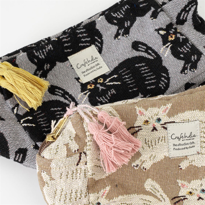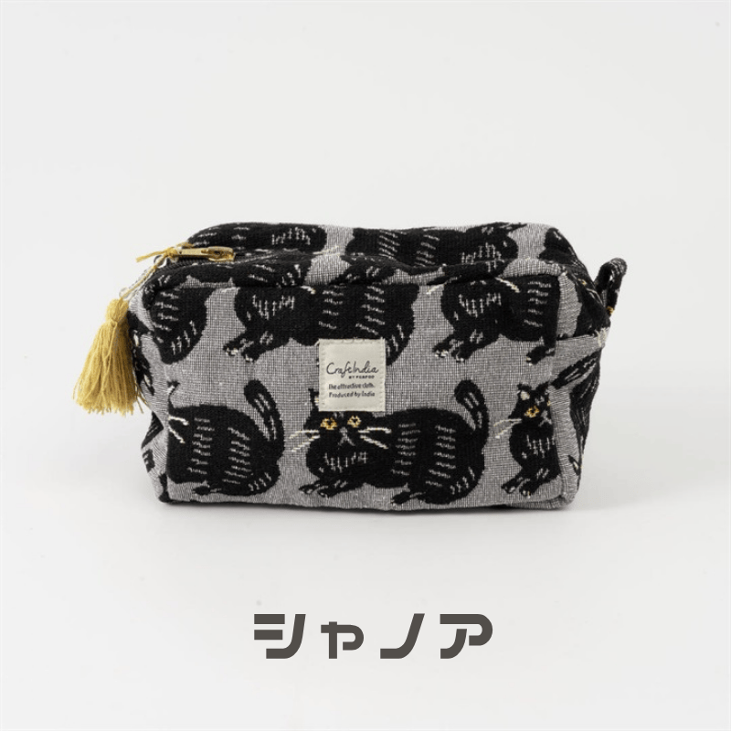 【Craft India / クラフトインディア】ジャガードポーチ cat|2種類から選べる♪ シャノア/ペルレ|猫ネコねこキャット