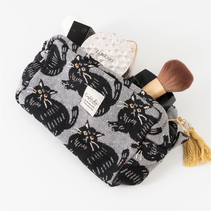 【Craft India / クラフトインディア】ジャガードポーチ cat|2種類から選べる♪ シャノア/ペルレ|猫ネコねこキャット [FASH190]