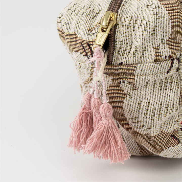 上品な生地感が魅力のジャガード織のアイテム。 メイクポーチにぴったりなたっぷり容量の定番サイズ。 バリエーション豊富なオリジナルの柄や織模様で楽しい気分をお届けします。 柄違いのアイテムはページ下部のおすすめ商品をご覧ください♪