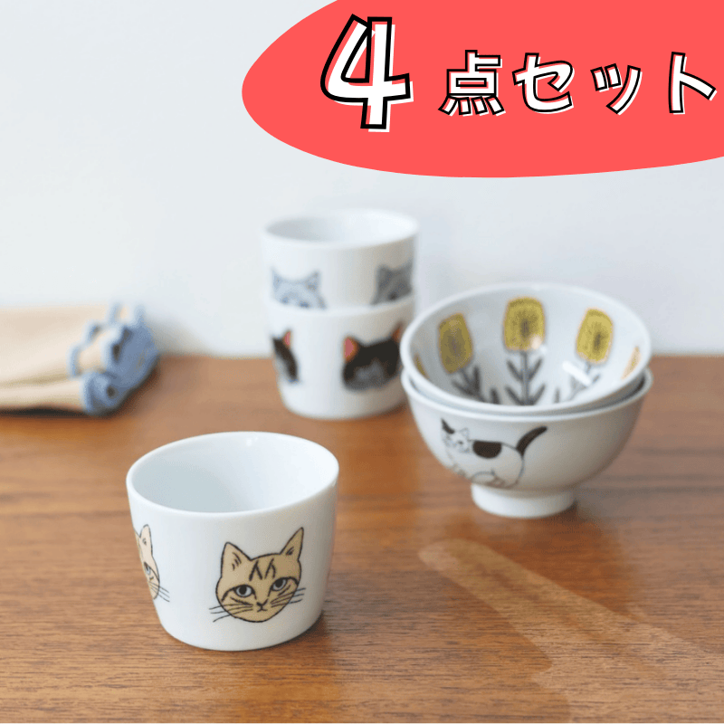 【松尾ミユキ / Matsuo Miyuki】\4点セット/ Free cup フリーカップ コップ|\4点セット/ Chloe/Pepper/Noisettes/Pumpkin|ねこ猫ネコcat