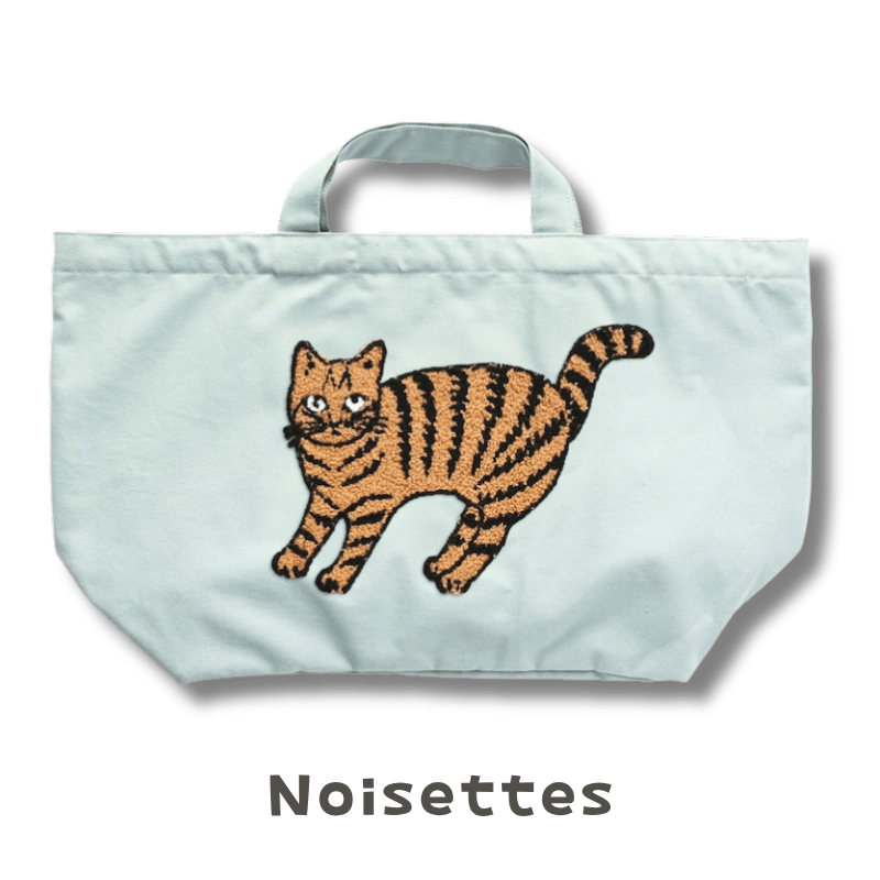 どこかとぼけた表情が愛らしい、松尾ミユキさんデザインのネコ刺繍トートができあがりました。 ボート型のトートバッグに、ふわふわのモコモコ刺繍でネコの顔をあしらっています。 裏側にはロゴの刺繍も。 今回のシリーズは、張り感のある生地を使っているので、荷物を入れてもへたりにくく、日常使いにも安心です。 ちょっとしたお出かけやお買い物に、思わず連れて行きたくなる存在。ナチュラルなスタイルにも、遊び心をひとさじ加えてくれます。