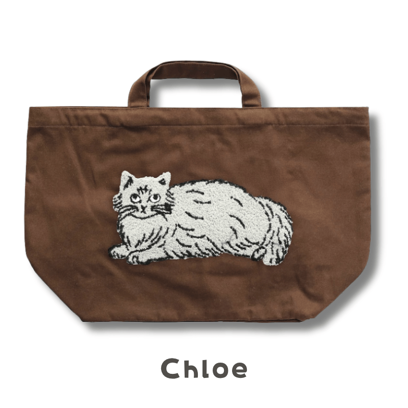 【松尾ミユキ / Matsuo Miyuki】Fluffy Boat and Tote もこもこ猫刺繍 ボートアンドトートバッグ|4種類から選べる Chloe/Pepper/Noisettes/Pumpkin|ねこネコcat [FASH203]