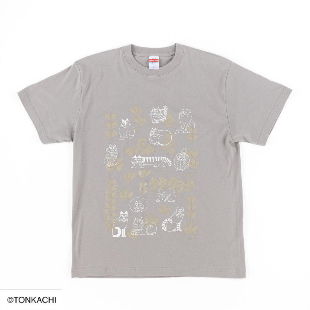 【リサ・ラーソン / LISA LARSON】Tシャツ(スケッチねこたちLeaves series2・ライトグレー) - M | 猫ネコねこcat [FASH213]