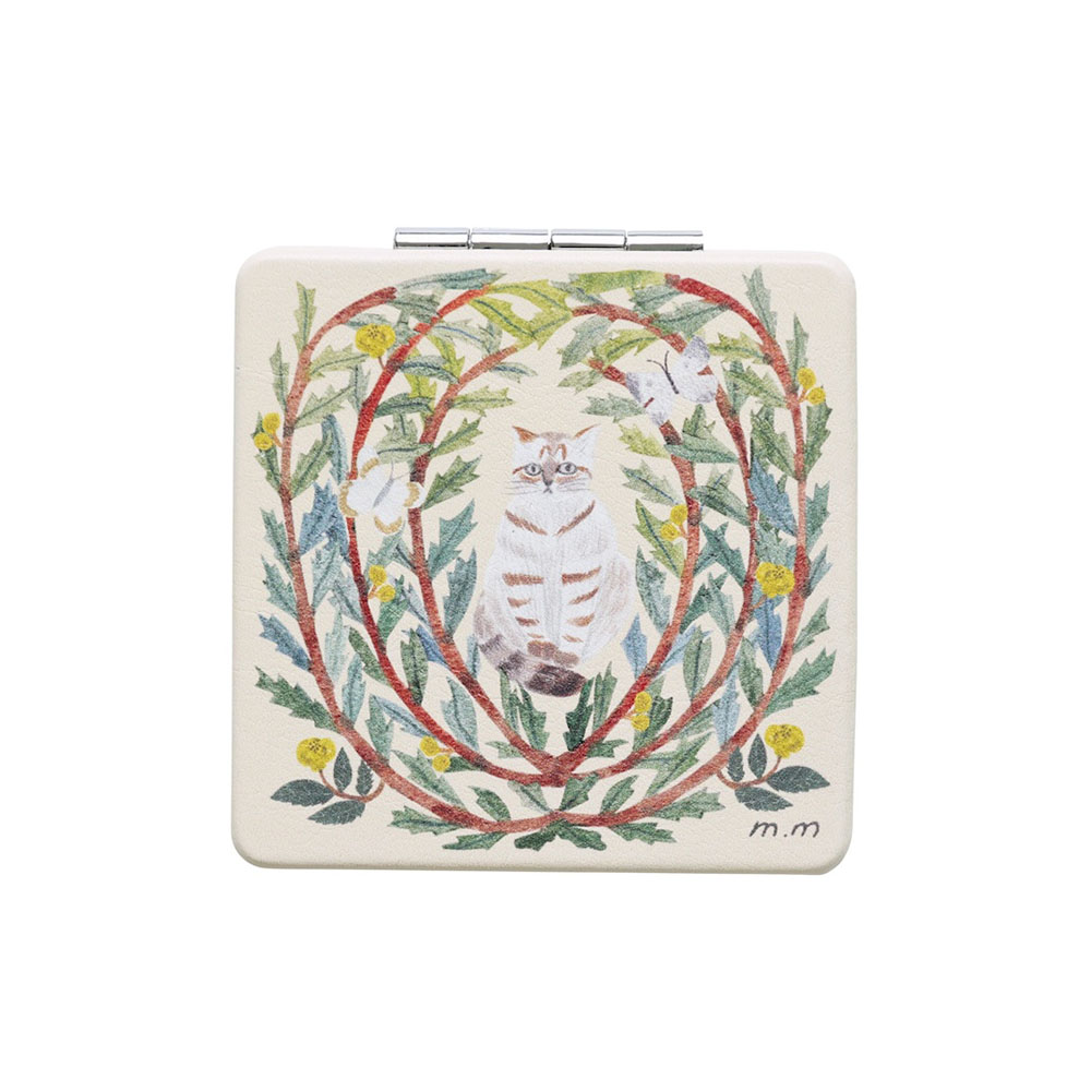 【松尾ミユキ / Matsuo Miyuki】Square mirror Butterfly cat|四角型コンパクトミラー・携帯用手鏡|ねこ猫ネコcat