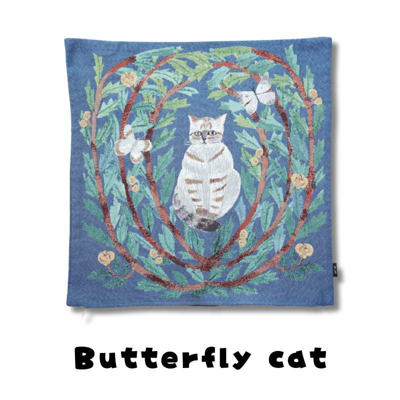 【松尾ミユキ / Matsuo Miyuki】Cushion cover 「Butterfly cat」|クッションカバー|ねこ猫ネコcat