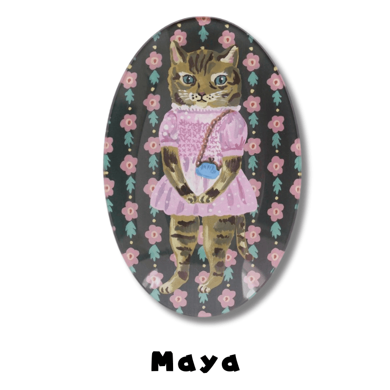 【ナタリー・レテ / Nathalie Lete】\4枚セット/ Glass Oval plate|4点セット ガラスプレート皿 だ円|Tabby cat / Black cat / Blue eye / Maya|ねこ猫ネコ
