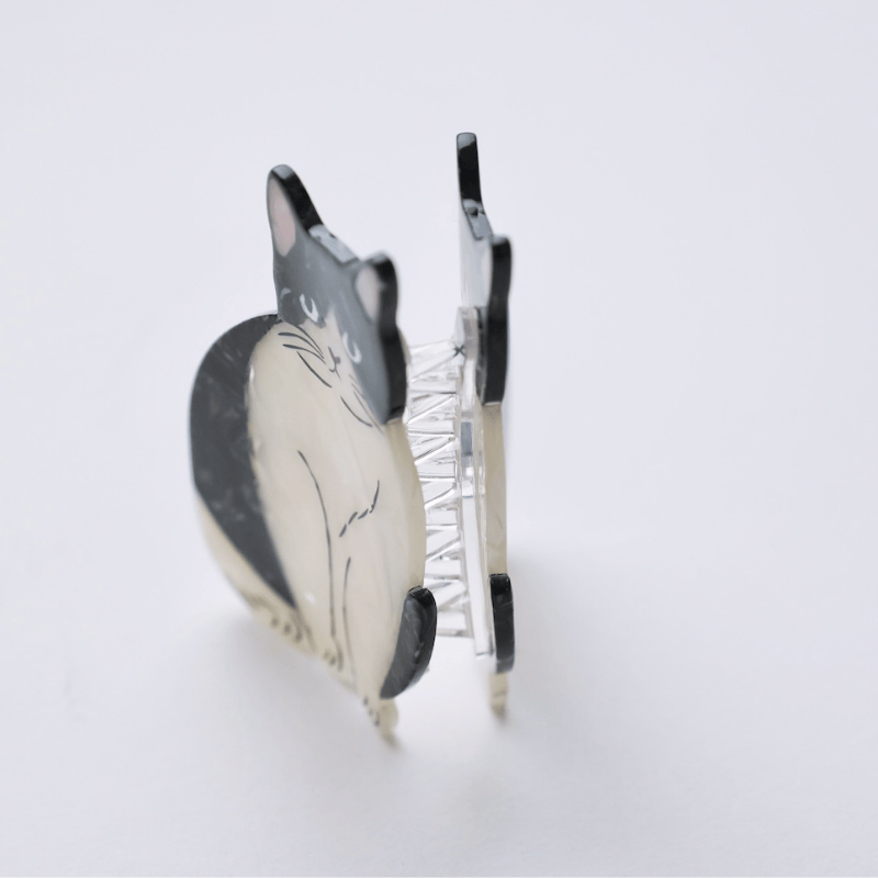 どこかほっこりする表情が魅力の松尾ミユキさんのネコたちが、ヘアクリップになりました。 まとめ髪を留めたり、バッグに付けてアクセントにしたり、使い方は自由に気軽に楽しめそう。自分用にも、ちょっとしたプレゼントにも◎。