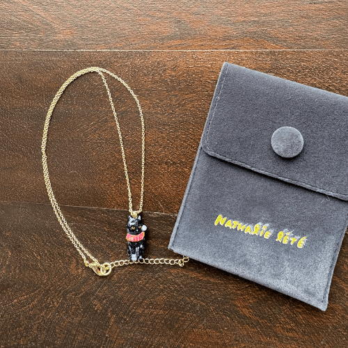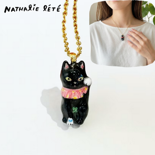 【ナタリー・レテ / Nathalie Lete】Necklace Lucky cat-BK|真鍮ネックレス ラッキーキャット ブラック(黒)|ブラスアクセサリー 猫ねこネコ