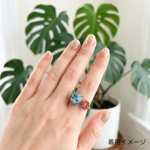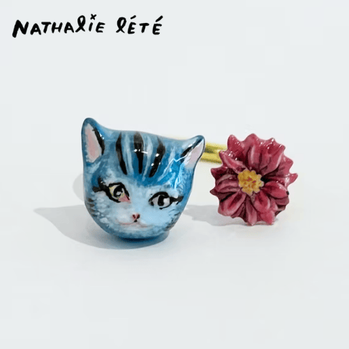 【ナタリー・レテ / Nathalie Lete】Two motifs ring Blue Cat Size:11|真鍮の指輪 ブラスリング 11号|アクセサリー 猫ねこネコ