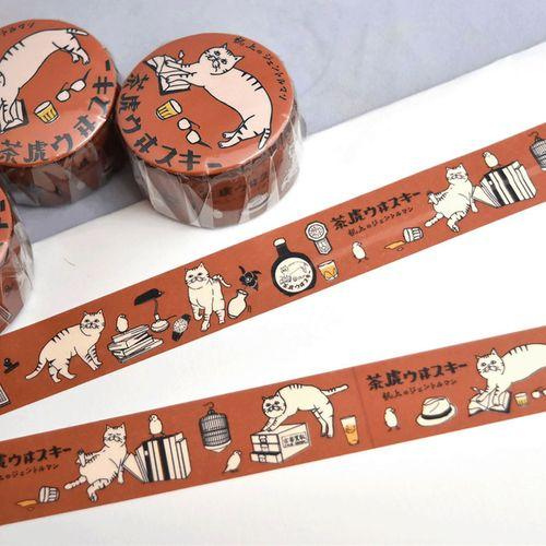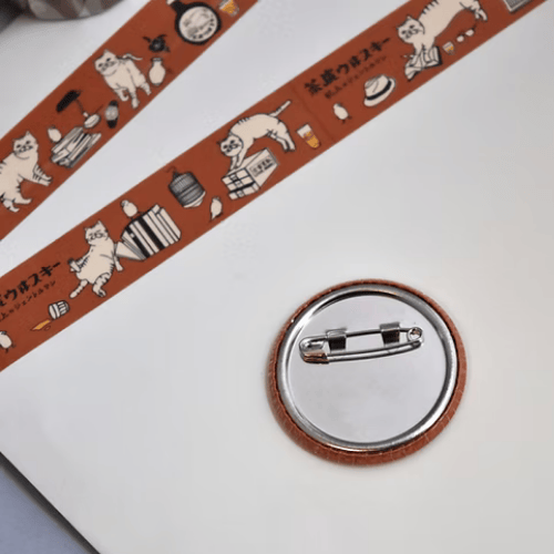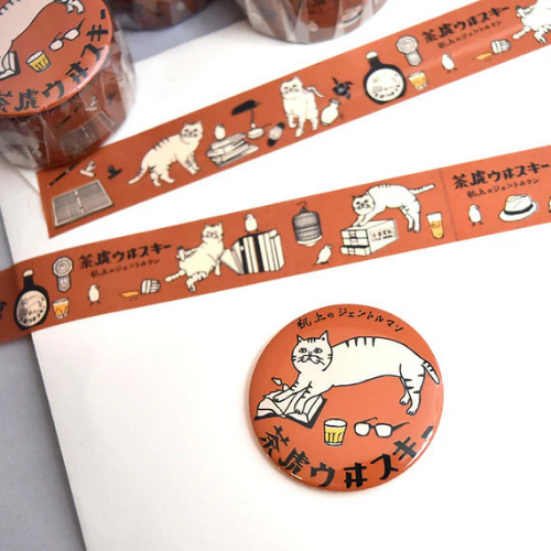【星羊社 / 茶虎ウヰスキー】茶虎ウヰスキー 缶バッジ付きマスキングテープ|ねこ猫ネコcat