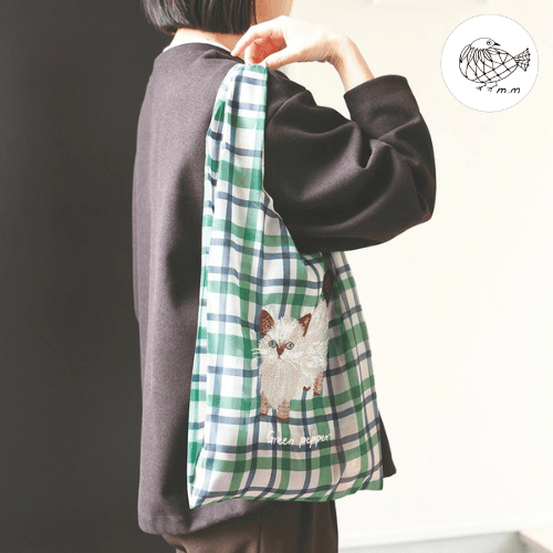 透け感のあるポリエステル素材に、松尾ミユキさんの描くネコの刺繍をあしらったバッグです。 ネコ刺繍の愛らしさに、チェック柄が心地よいアクセントを添えています。 軽やかな素材感で、ラフに持てるのも魅力。 ネコ好きさんへの贈り物としてもおすすめです。