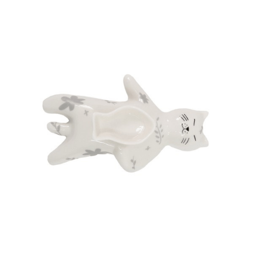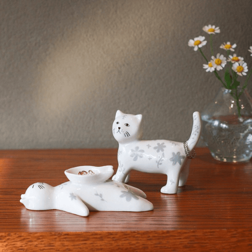愛らしい花柄をまとった磁器製の猫のインセンストレイ。
