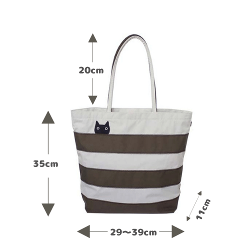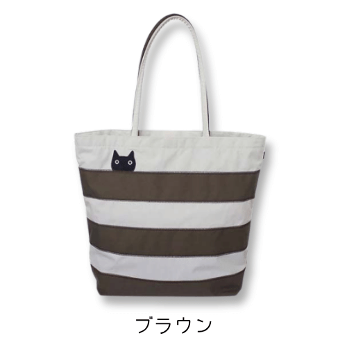 ちょこんとのぞくネコの顔がかわいい、マタノアツコ ボーダー柄ショルダーバッグです。