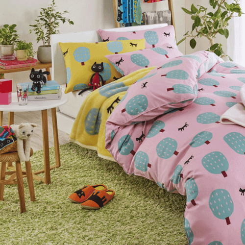 【マタノアツコ / Atsuko Matano】掛カバーシングル 猫と木|2種類から選べる ピンク / イエロー|ねこ猫ネコキャットcat